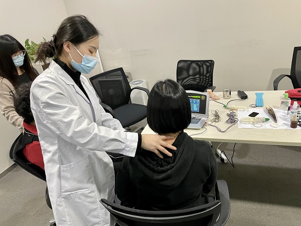 醫(yī)師為報(bào)名參加活動(dòng)的員工進(jìn)行了搭脈、面診、詢問病史,并針對(duì)頸椎供血不足、寒濕性關(guān)節(jié)炎等常見勞損問題提供了專業(yè)推拿、拔罐、艾灸、遠(yuǎn)紅外熱敷等專業(yè)調(diào)理,同時(shí)還在現(xiàn)場示范了一些易于掌握的穴位按摩和推拿手法,科普正確的疾病自我預(yù)防方案。